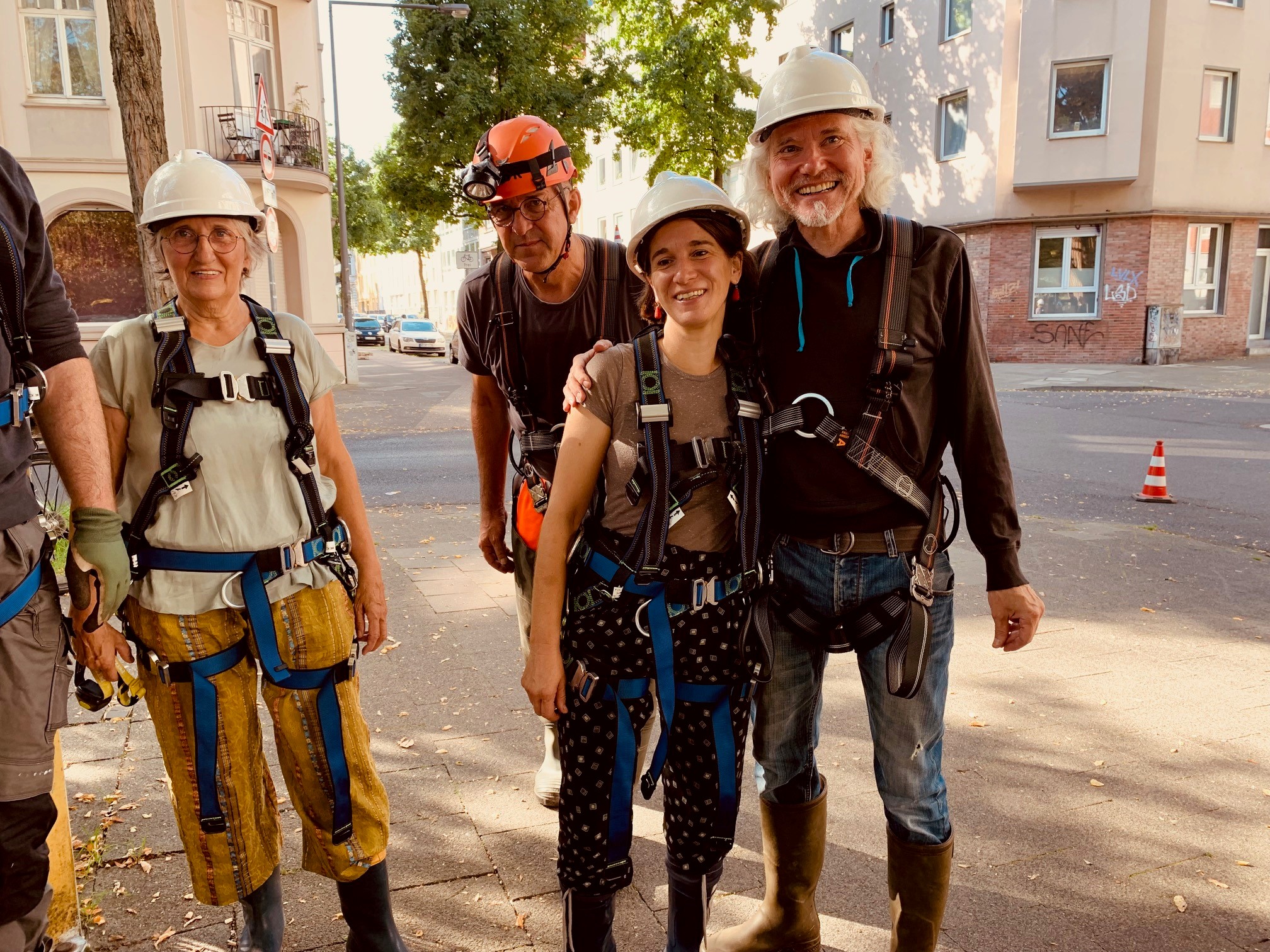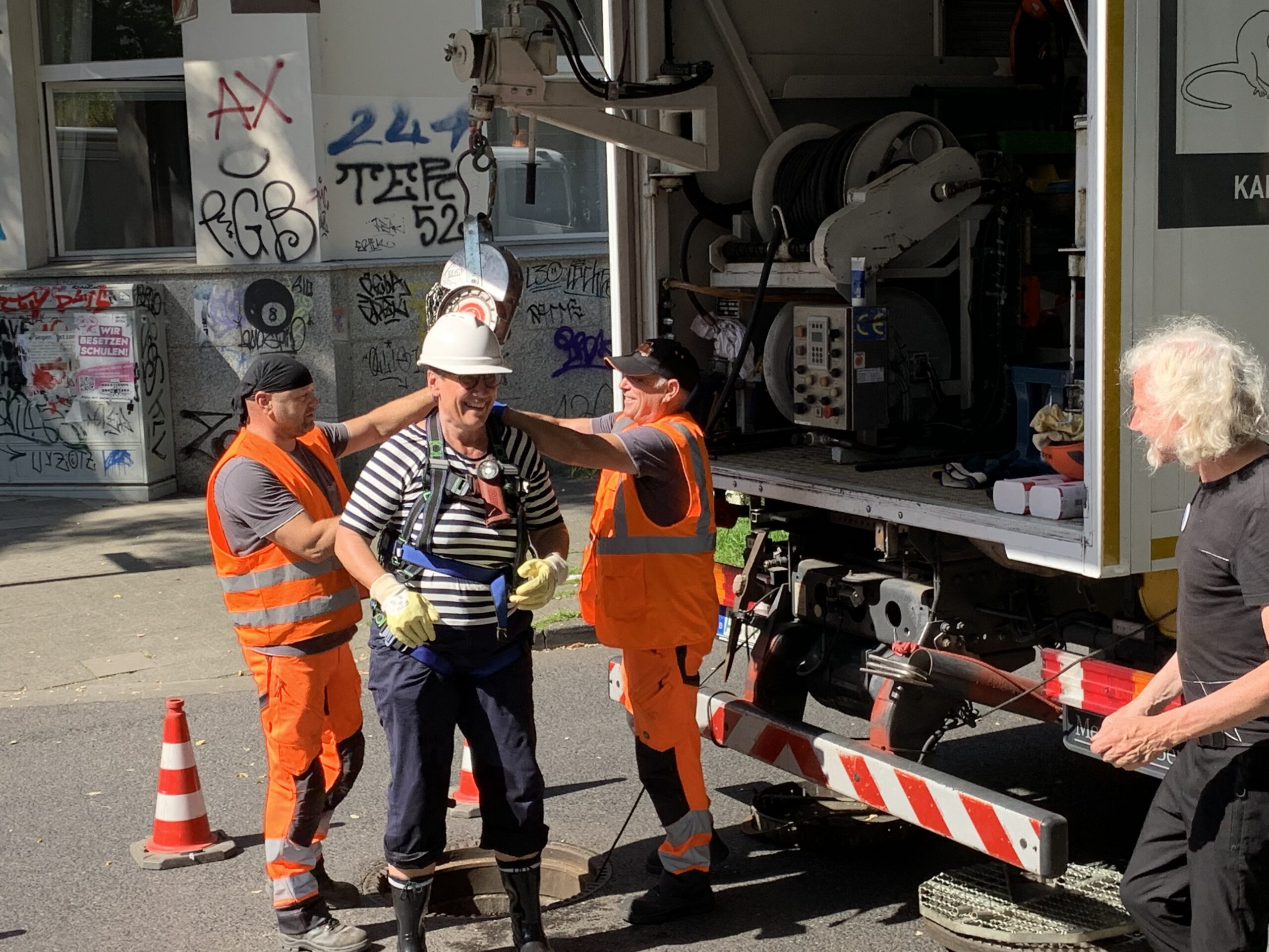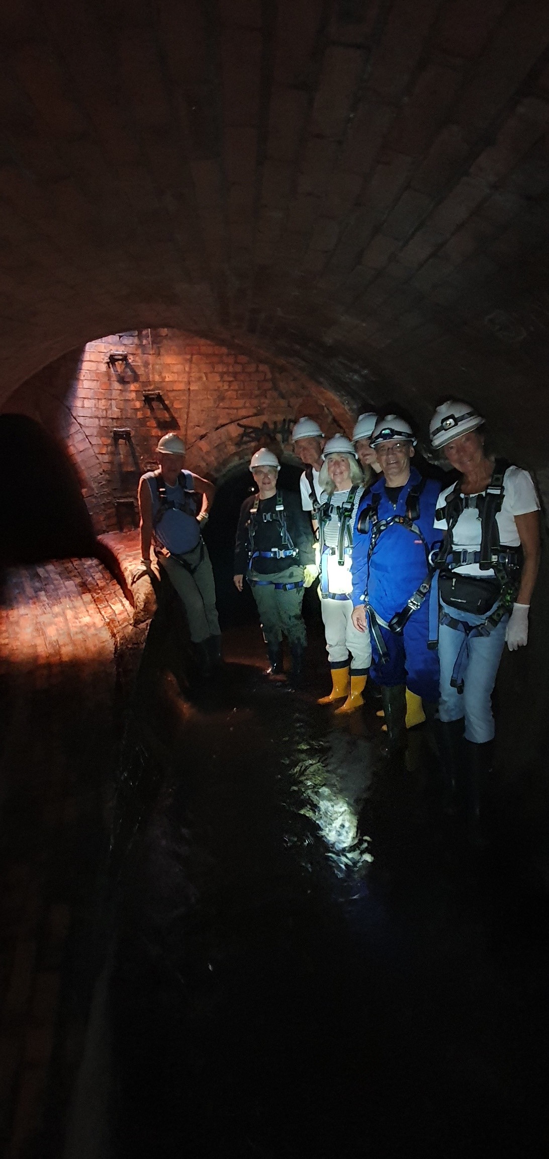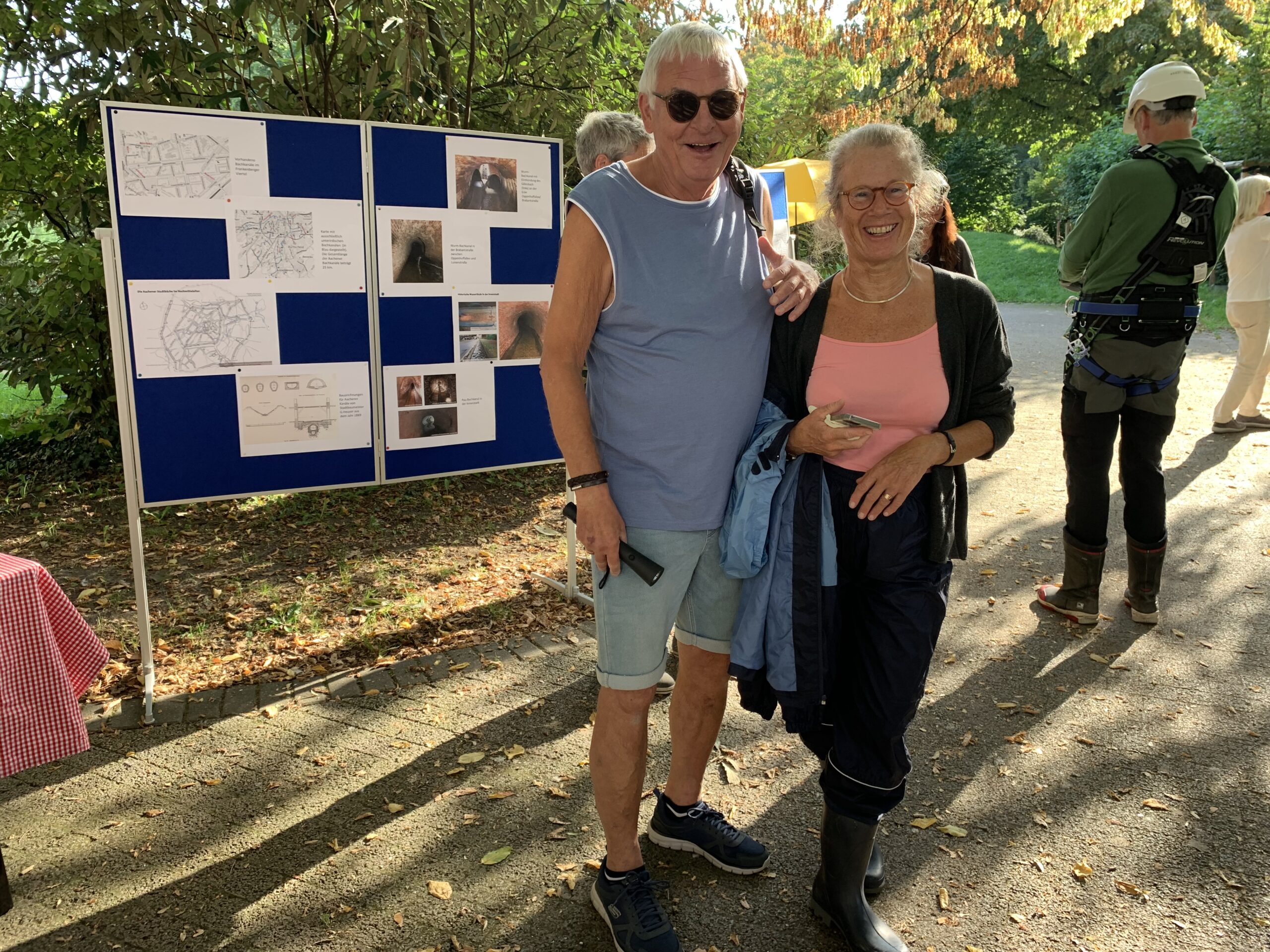 Nicht ganz so alt und dennoch kaum bekannt, aber nicht minder spannend ist der gut 120 Jahre alte, in ca. 3 Meter Tiefe liegende, geklinkerte Wurmbachkanal unterhalb der Brabantstraße zwischen Oppenhoffallee und Luisenstraße, der im Rahmen des Tags des offenen Denkmals besichtigt werden konnte. Die Projektgruppe „Aachener Bäche ans Licht“ hat dies zusammen mit der Regionetz für 70 Personen möglich gemacht, viele andere gingen leider leer aus, denn das Interesse war groß. Doch nicht nur die Aachener Zivilbevölkerung interessiert sich für ihre Bäche, auch Oberbürgermeisterin Sibylle Keupen und Stadtbaurätin Frauke Burgdorff ließen sich die Besichtigung nicht entgehen. Beide sind wichtige Unterstützerinnen für das Projekt, freut sich Helmut Berg, der den Besuchern nach ihrem Aufstieg aus der Unterwelt die weitergehenden Pläne zu Offenlegung und Erlebbarmachung der Aachener Bäche präsentierte.