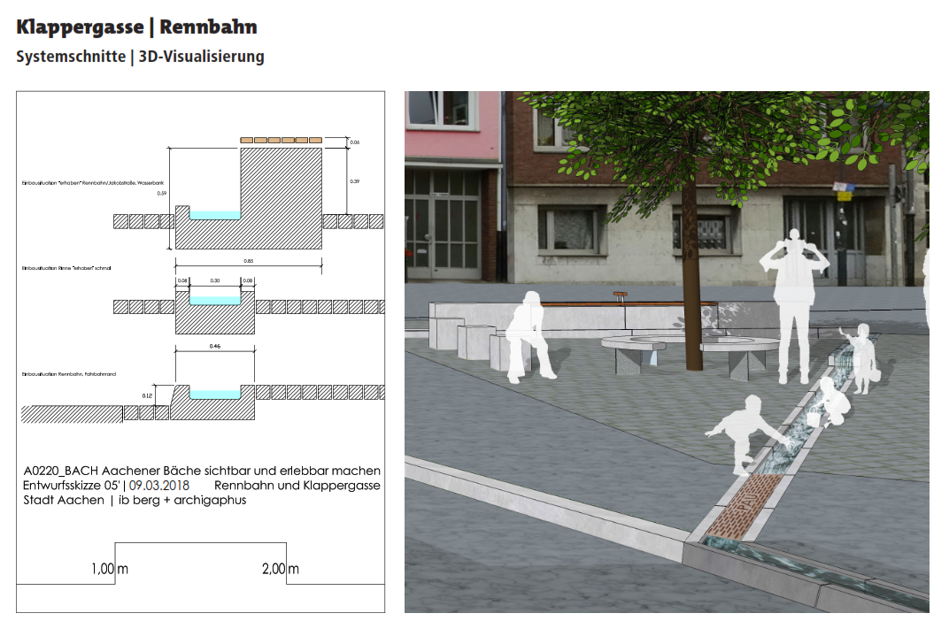 - die Entwicklung eines langfristigen Leitkonzeptes zum Potential offener Bachabschnitte in der Aachener Kernstadt sowie