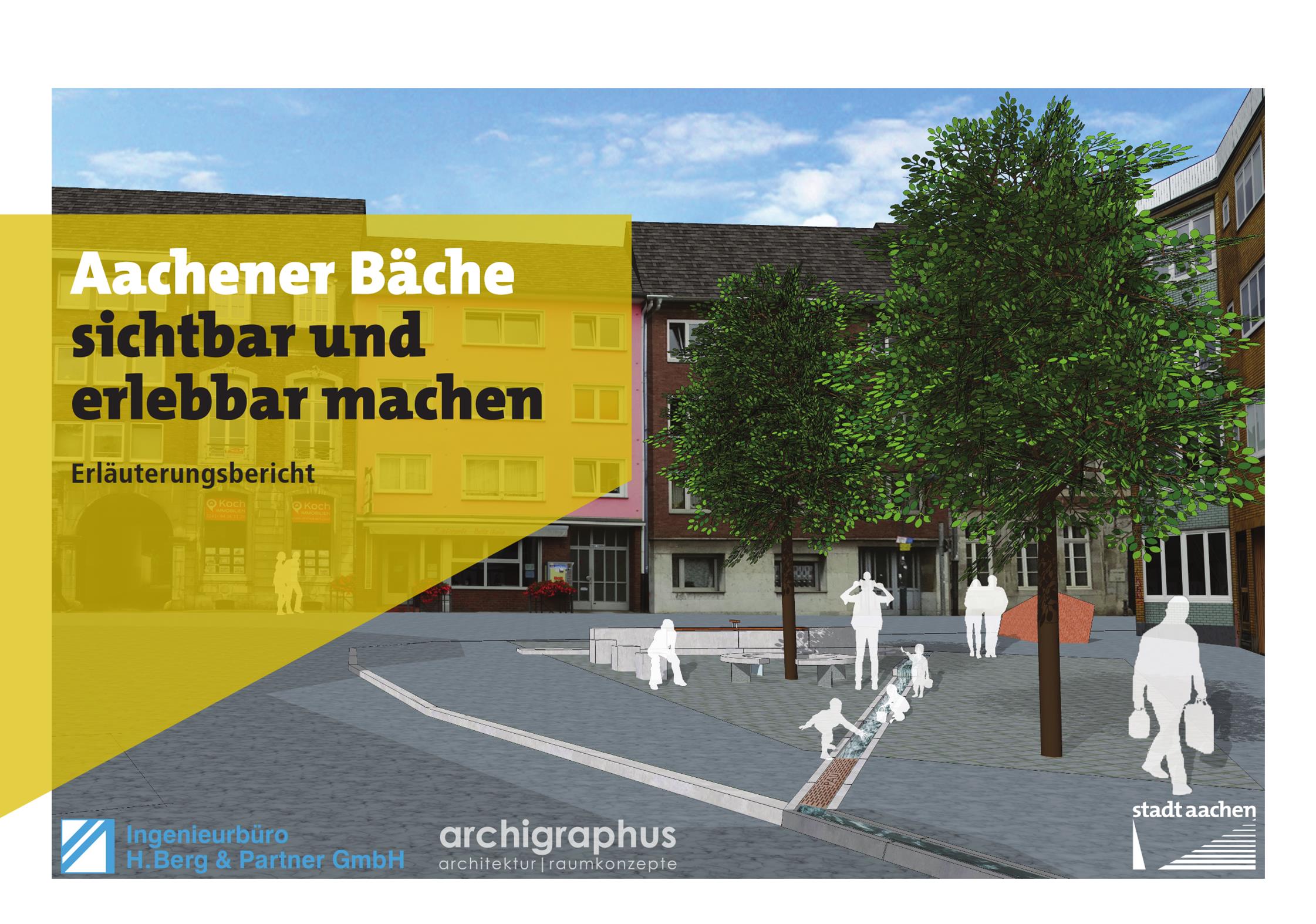 Kurz vor Weihnachten 2016 erhielt das Ingenieurbüro H. Berg & Partner GmbH zusammen mit dem Büro archigraphus GbR von der Stadt Aachen den Auftrag zur Erarbeitung einer Machbarkeitsstudie, welche die technischen, gestalterischen und finanziellen Grundlagen untersucht, um die Aachener Bäche wieder sichtbar und erlebbar zu machen. Der Untersuchungsraum bezog sich dabei ausschließlich auf den Innenstadtbereich.