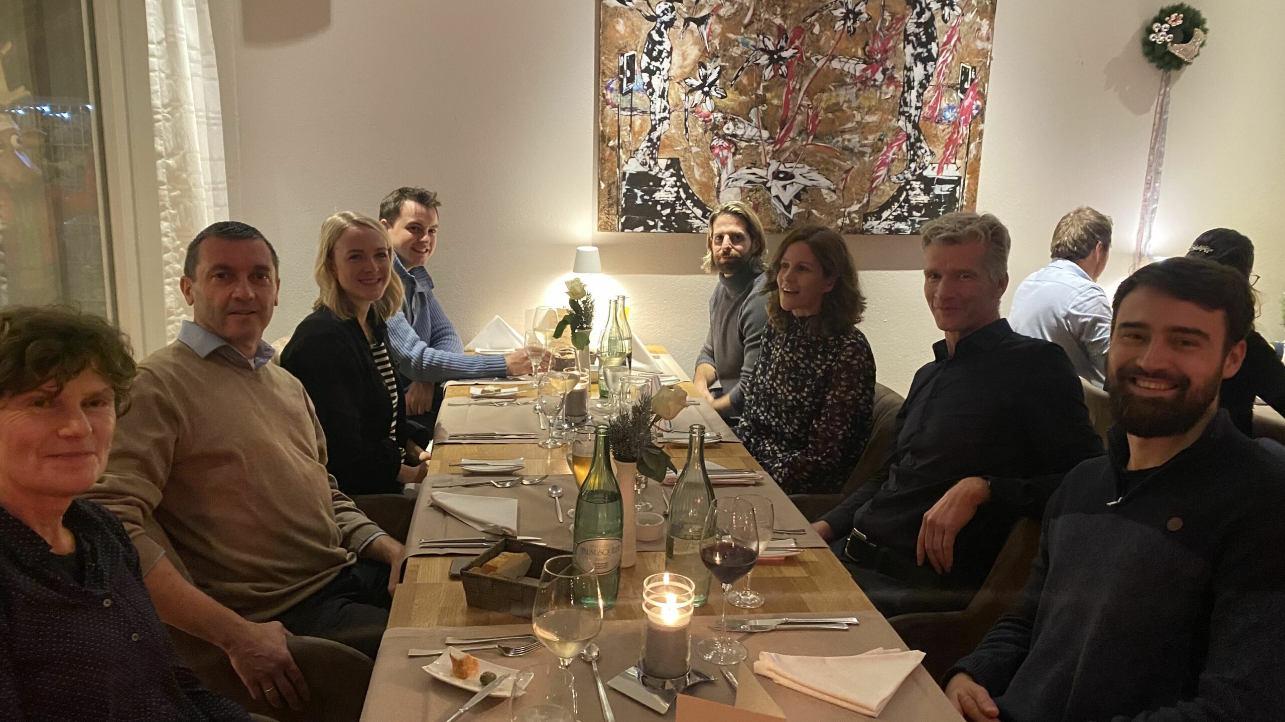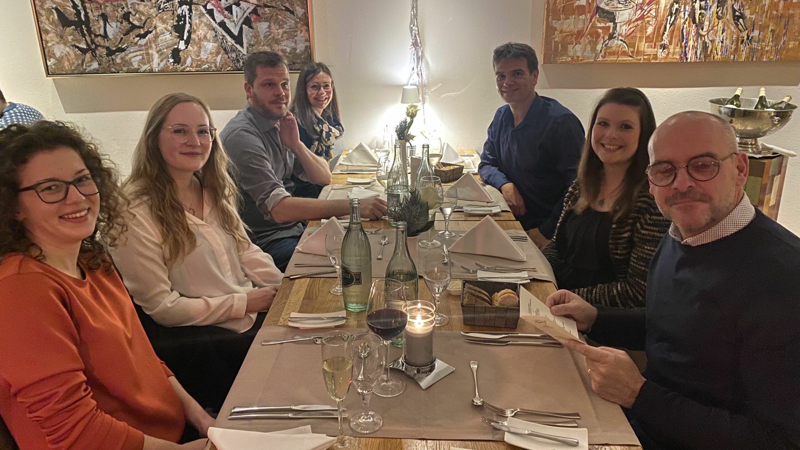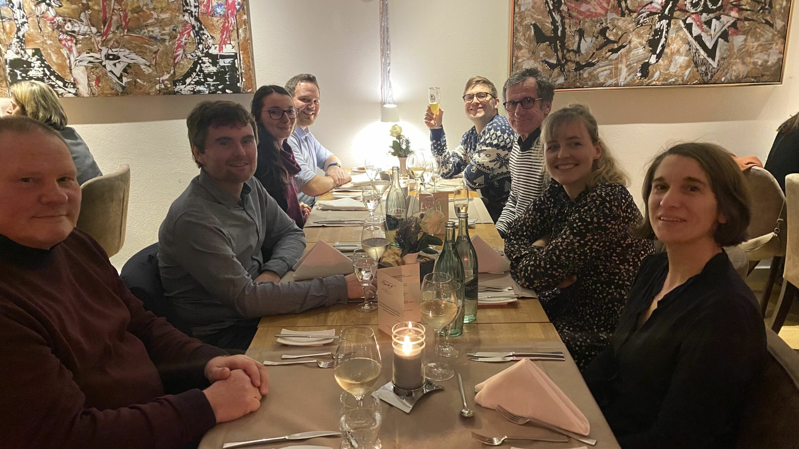Um das private Weihnachtsfest der Kolleg:innen nicht durch eine etwaige Corona-Erkrankung zu gefährden, haben wir unsere betriebliche Weihnachtsfeier in diesem Jahr bereits Ende November veranstaltet. Scheinbar eine gute Idee: Dass die Kolleg:innen sich darauf gefreut und den Abend genossen haben, kann man wohl deutlich auf den Fotos sehen :-) (die bescheidene Qualität selbiger bitten wir zu entschuldigen)