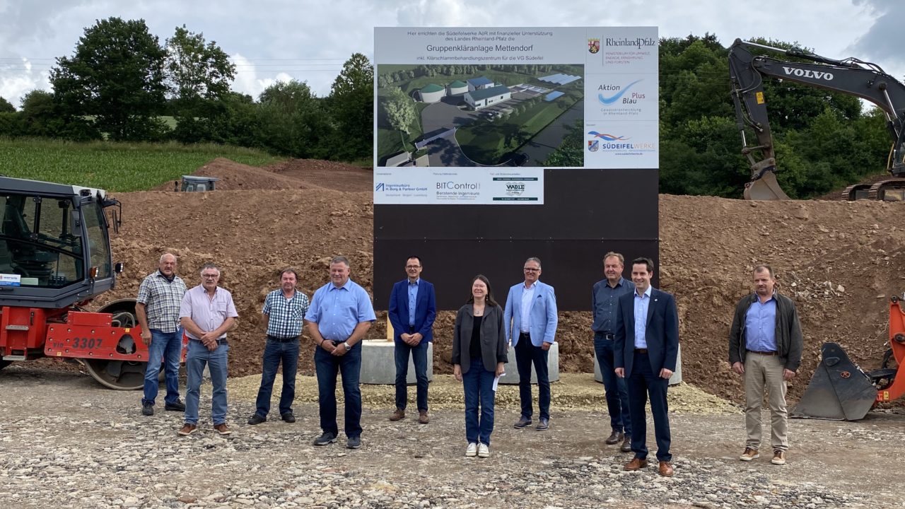Die Bagger rollen bereits, der Oberboden ist abgeschoben – seit Mitte Mai ist die ehemalige Wiesenfläche nicht mehr wiederzuerkennen. Es entsteht die neue Gruppenkläranlage Mettendorf für 3.500 Einwohner aus den Ortschaften Mettendorf, Sinspelt, Utscheid, Niederraden, Obergeckler und Niedergeckler.