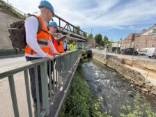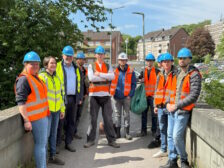 Einen Tag später fand eine durch das Ingenieurbüro H. Berg & Partner GmbH organisierte und geführte Exkursion für Studierende der FH Aachen zum Projekt „Wurmpromenade und Hochwasserschutz Wurm“ statt. Unter der Führung von Sandra Willems, Projektleiterin des WVER, Prof. Heinrich Schäfer vom Erftverband sowie unseres Bauleiters Dirk Heidelberg, der die Umsetzung der städtebaulichen Maßnahme seitens unseres Büros begleitet, informierten sich 8 Studierende des Vertiefungsstudiums „Wasserbau“ der FH Aachen über dieses komplexe Projekt.