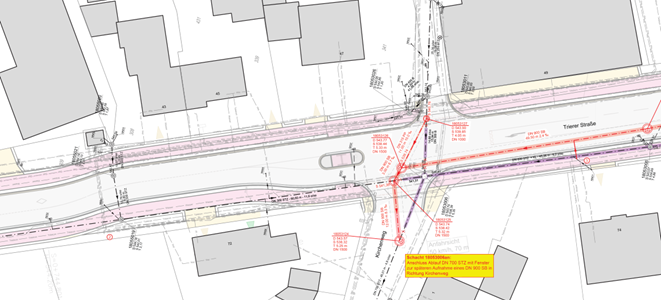Bereits im Jahr 2021 aktualisierte das IB Berg den Generalentwässerungsplan (GEP) für die Ortslage Konzen als Kanalnetzanzeige nach § 57.1 LWG NRW. Der GEP deckte an mehreren Stellen der Mischwasserkanalisation hydraulische Schwachpunkte auf. In der Folge sollten im Bereich der Trierer Straße (B 258) diese Schwachpunkte durch Vergrößerung der Kanalnennweiten in offener Bauweise beseitigt werden.