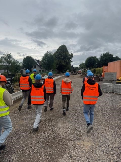 Ende Juni 2025 besuchten etwa 15 Studierende der Fachrichtung Verkehrswesen der FH Aachen die Kanal- und Straßenbaustelle an der Bundesstraße B258. Darunter befand sich auch unsere Kollegin Rahiq, die derzeit berufsbegleitend ihren Master in Verkehrswesen an der FH Aachen absolviert.