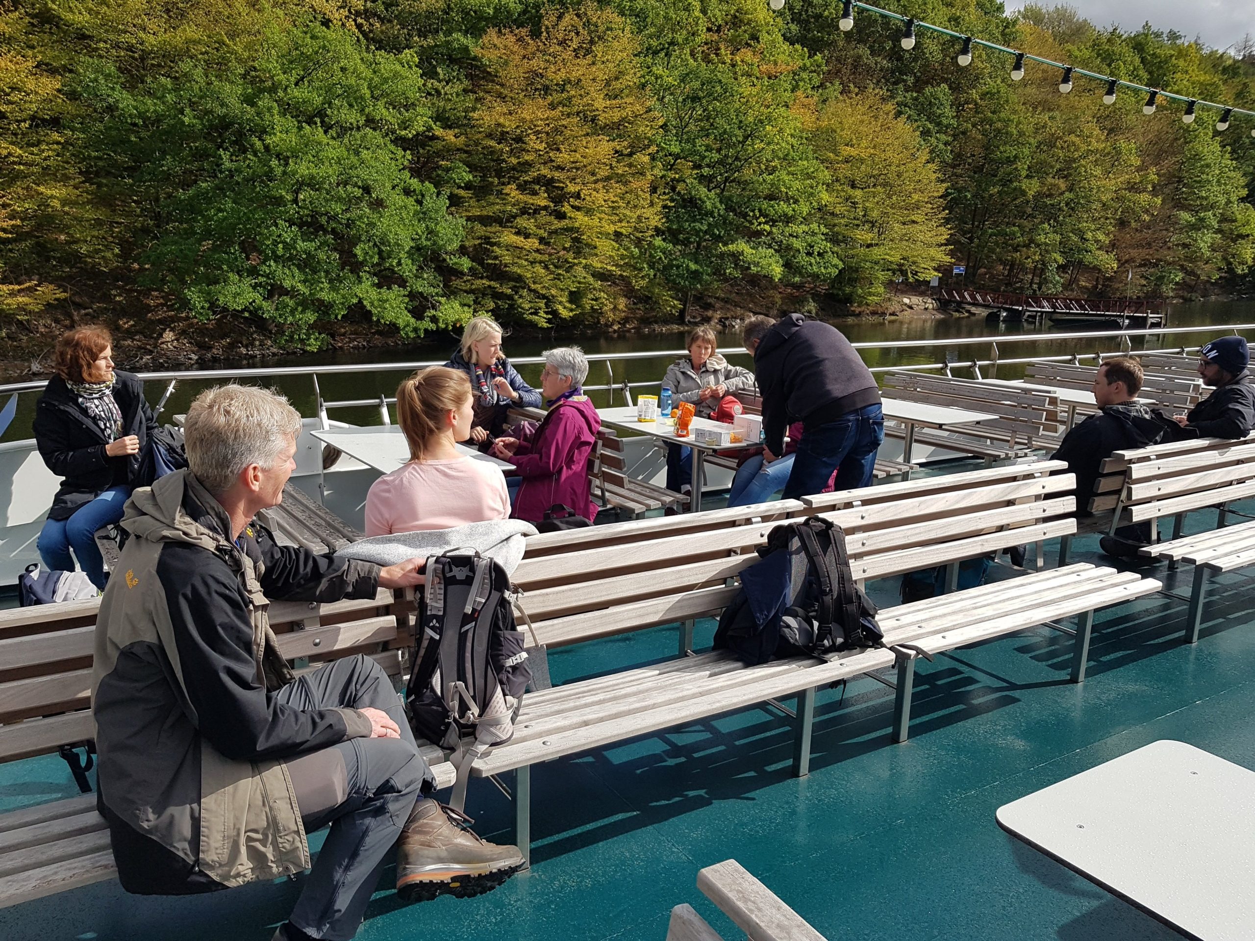 Zum Glück hat auch das Wetter entgegen der vorherigen Prognosen weitestgehend mitgespielt und immer nur dann Regen geschickt, wenn man ein mehr oder minder schützendes Dach über dem Kopf hatte (Wald, Restaurant, Schiff). Denn neben dem fachlichen Bezug, gab es zudem in diesem Jahr die Vorgabe: möglichst im Freien und unter Einhaltung der Hygienemaßnahmen.