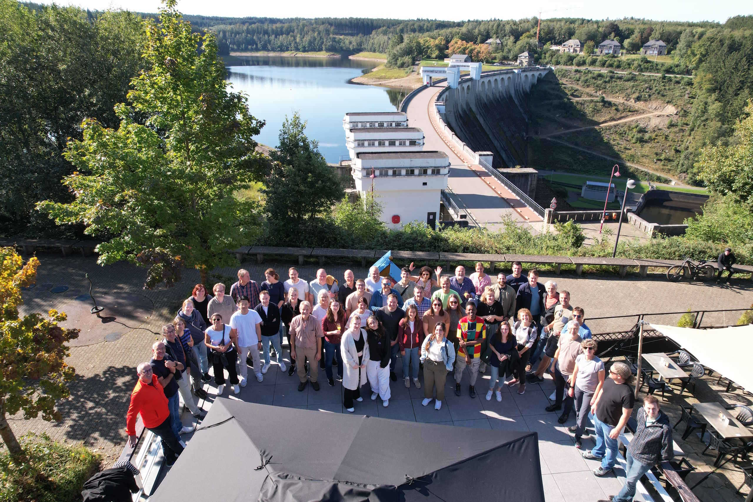Treffpunkt war 9 Uhr an der Wesertalsperre in Eupen (B). Nachdem alle eingetrudelt waren, haben wir uns erstmal mit unserem traditionellen Berg-Büroausflug-Standard-Frühstück 🥪☕🍾🥂 mit belegten Brötchen, Kaffee, Saft und Sekt gestärkt. Im Anschluss bekamen wir, aufgeteilt in 3 Gruppen, von Josef Weber, Josef Thaeter und Bernd Derichs von der TouristInfo Eupen eine knapp zweistündige interessante und kurzweilige Führung im Inneren der Staumauer sowie in der Trinkwasseraufbereitungsanlage. Nochmals vielen Dank dafür! ❤
