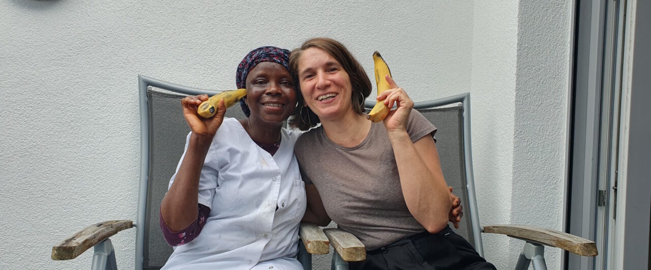 Fast jedes Jahr verwöhnt uns unsere liebe Reinemachfrau Joyce mit einem traditionellen Essen aus ihrer Heimat Ghana, bestehend aus verschiedenen Köstlichkeiten: Neben gegrillten Hähnchenstücken gibt es einen würzigen Tomaten-Reis (auch Jollof rice genannt), weiße Bohnen, frittierte Kochbananen, frittierten Maniok, Salat und eine scharfe Sauce. Und all das macht sie mehr oder weniger alleine, mit lediglich ein wenig Unterstützung unsererseits, für ca. 50 Personen!