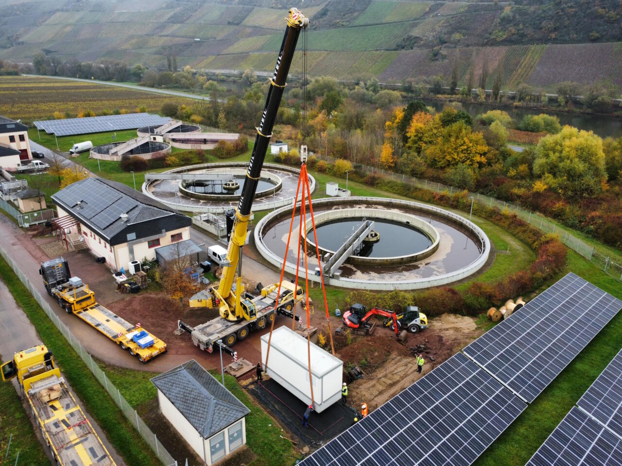 Abwassertechnisch ist die Gruppenkläranlage (GKA) Leiwen bereits auf dem neuesten Stand, u. a. durch eine 2019 gebaute moderne Schlammentwässerung und -verladung (> mehr erfahren). Nun ist sie es auch energetisch – dank Sonnenstrom – und das in einem Maße, dass sie sogar noch andere Liegenschaften mitversorgen kann. Möglich macht das ein Bilanzkreis. Dieser erlaubt es den Verbandgemeindewerken (VGW) Schweich den Strom, der nicht vor Ort in den direkten Eigenverbrauch geht, bilanziell innerhalb des Bilanzkreises auf anderen VGW-eigenen Liegenschaften zu nutzen.