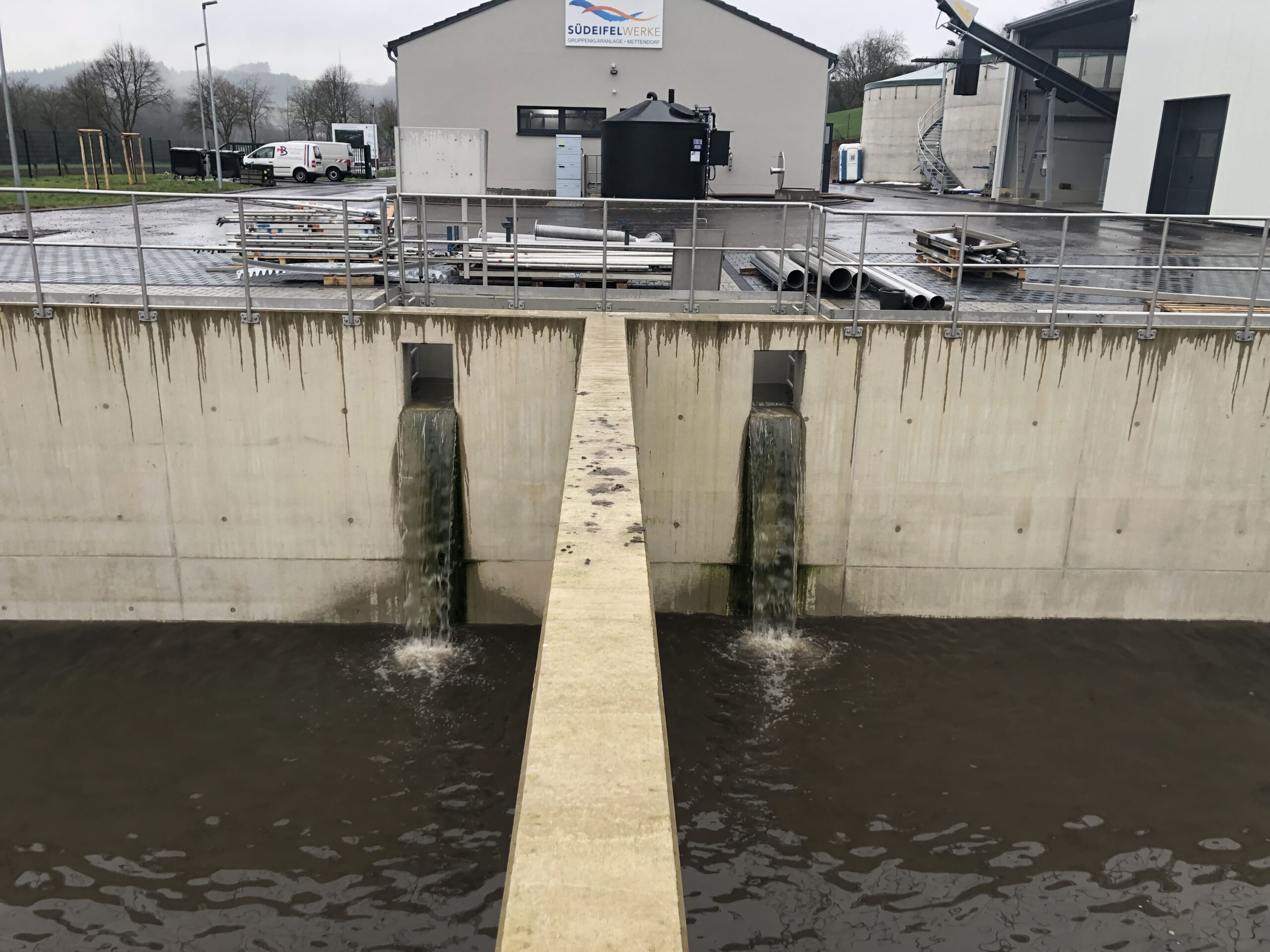 Es wird aber nicht nur eine Abwasserreinigungsanlage nach den neuesten technischen Standards realisiert, sondern gleichzeitig auch ein zentrales Schlammentwässerungscenter (SEC) für die gesamte VG Südeifel (26.370 EW) errichtet. Bestandteil sind eine Entwässerungszentrifuge und ein Schubbodencontainer mit entsprechender Infrastruktur (Schlamm- und Trübwasserspeicher, Annahmestation, Schlammvorlagebehälter usw.).