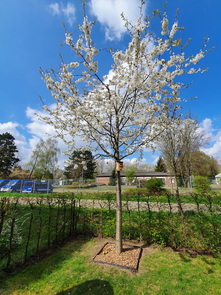 Gewiss nur eine kleine Entschädigung für die inzwischen überwiegend bebauten und versiegelten langjährigen Brachflächen des ehemaligen Camp Pirotte. Umso schöner, wenn man neben Amseln, Meisen und Rotkehlchen auch seltener anzutreffende Vögel wie den Hausrotschwanz, den Stieglitz oder den Grünspecht zu sehen bekommt! Im Gegensatz zu den erstgenannten Vogelarten wurden selbige bereits zum Teil mehrfach gesichtet!