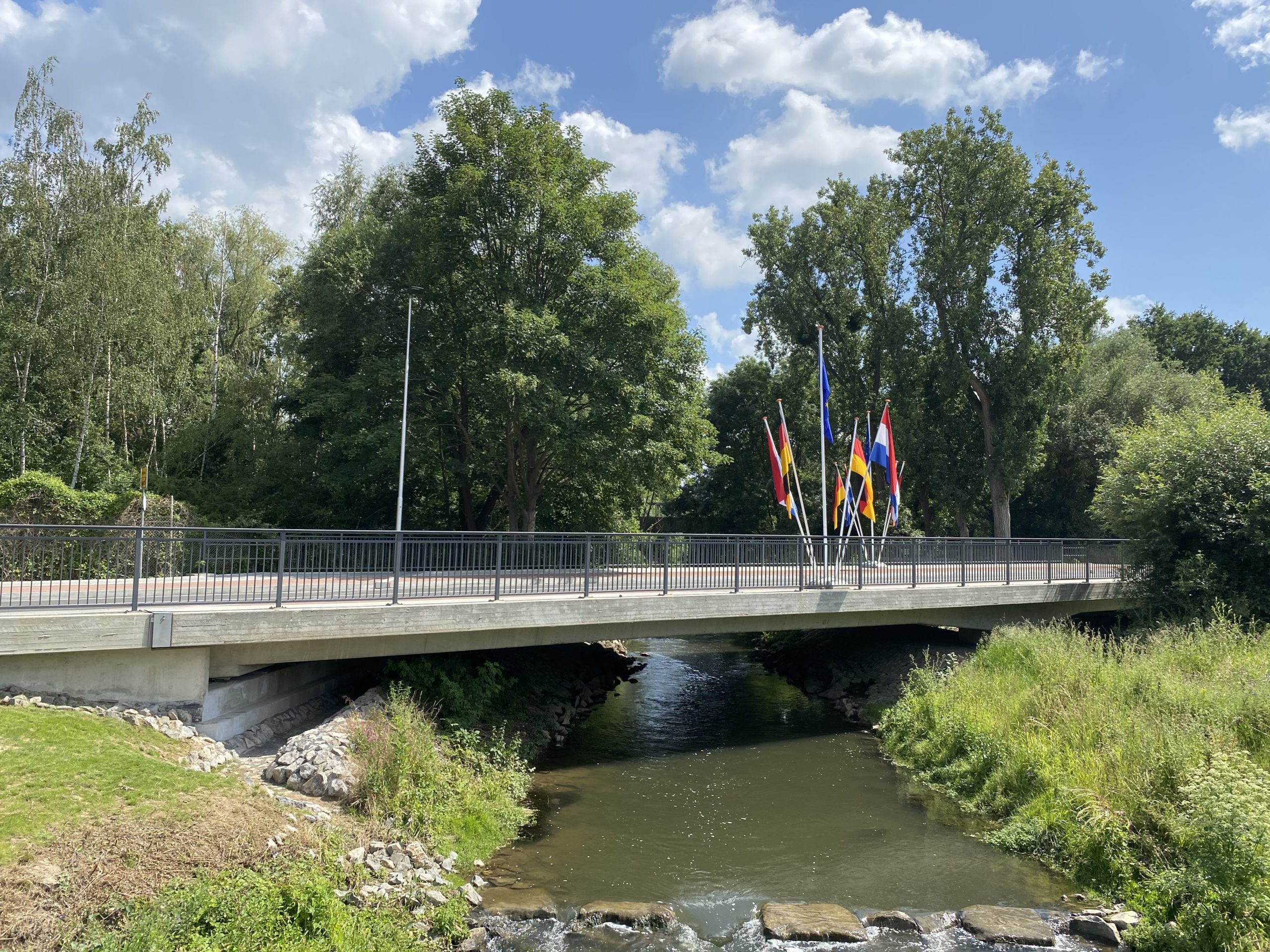 Nachdem die Brücke über die Wurm zwischen Herzogenrath und Kerkrade Anfang Dezember 2019 wieder für den Verkehr freigegeben werden konnten, wurden die Arbeiten an der sanierten Brücke im Frühling mit der Herstellung der farbigen Beschichtung der Radwege abgeschlossen.